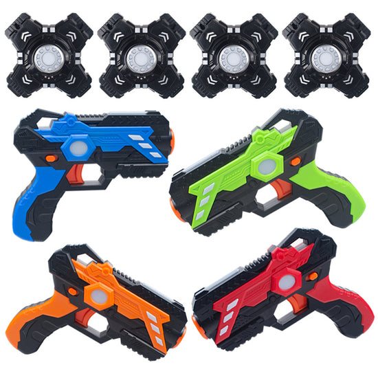 Multiple Configurations: Available in sets with guns and shields for team play.