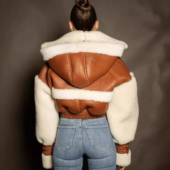 Adopte une allure rétro irrésistible avec cette veste courte en PU et fourrure intégrée, pensée pour offrir chaleur, style et confort durant tout l’hiver. Inspirée du streetwear américain, elle se distingue par ses coutures contrastées, son look vintage premium et sa silhouette moderne.