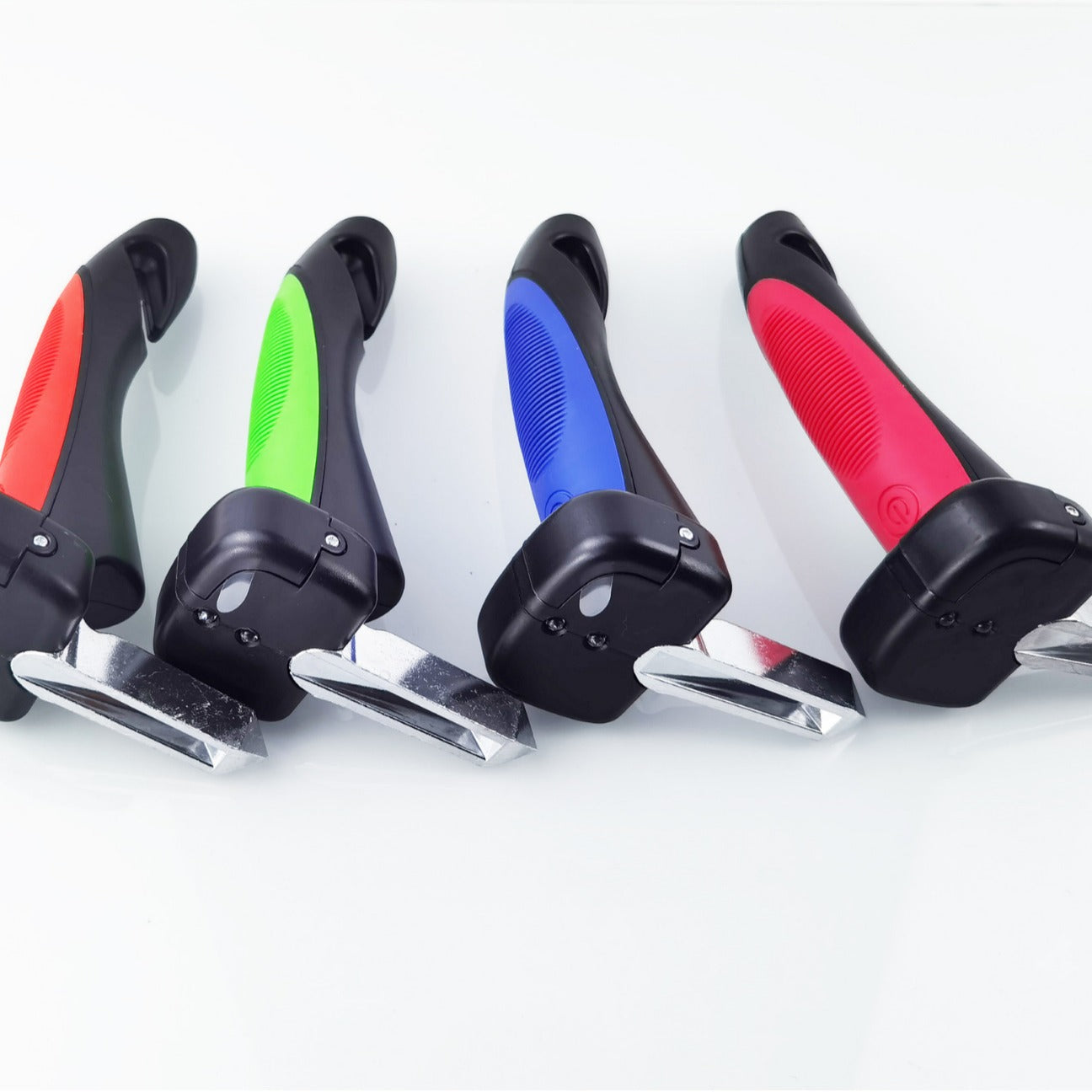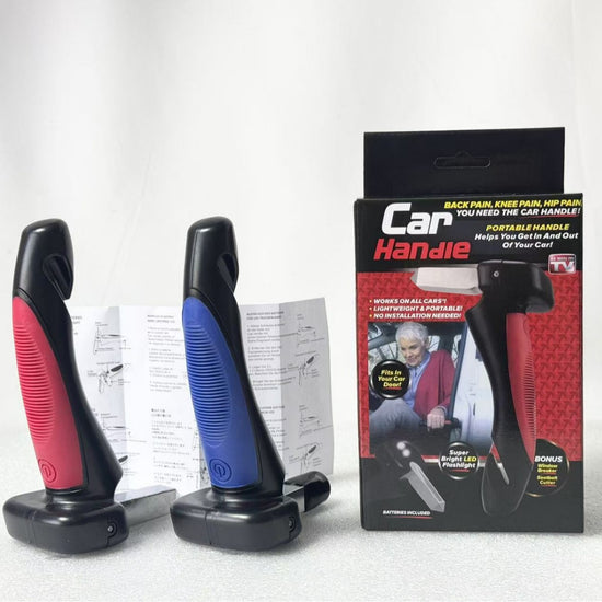 Multifunctional Design: Combines car door handle, escape hammer, LED light, and seatbelt cutter in one device.